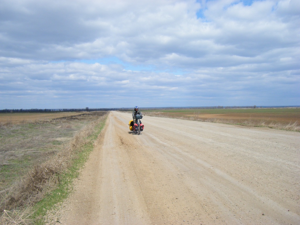 Le bateau n’est toujours pas reparti. On part direction Rostov les velos sur la citerne, et nous dans la classe S qui suit le convoi. Il y aura 500km, mais en Russie, il n’y a pas d’autoroute. On arrive donc a 11h en banlieue de Rostov, juste le temps de remercier Georges (qui avait deja un plan pour nous emmener a Volgograd en camion), et nous filons sur nos velos, dans la poussiere. Et oui c’est une caracteristique ici, il y a du sable et de la poussiere partout. La participation a ce petit convoi, nous permet de comprendre que les camions doivent avoir des “dokuments” pour franchir chaque frontiere de region. Ces “dokuments” s’achetent a la police, de maniere plus ou moins legal. On se rend compte qu’ici en Russie, quand on a de l’argent on n’a pas a craindre la police. Quand a nous… et bien, on va se faire petit. La route sera longue jusqu’a Volgograd. Les paysages russes sont tres monotones. Les routes sont toutes droites, et le vent commence a souffler tres fort. Heurseusement, les quelques rencontres que l’on fait sont tres accueillante.