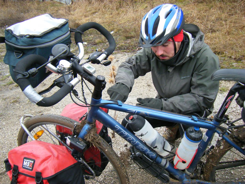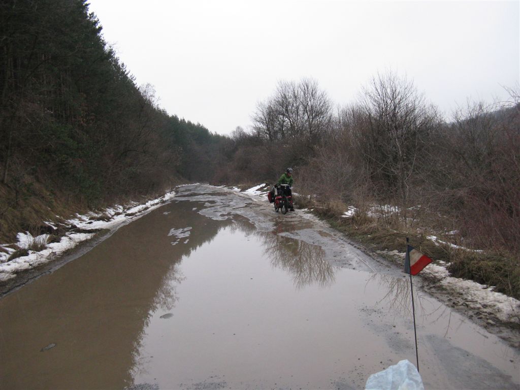 2500 Km à vélo en 1 mois et 21 jours, ce chiffre me semble irréel et pourtant ce n’est qu’un bout de votre voyage. Pour l’instant j’ai vu beaucoup de pluie, de neige, de gelées et maintenant de boue. J’espère que très rapidement un soleil réconfortant viendra vous caresser de ses doux rayons.