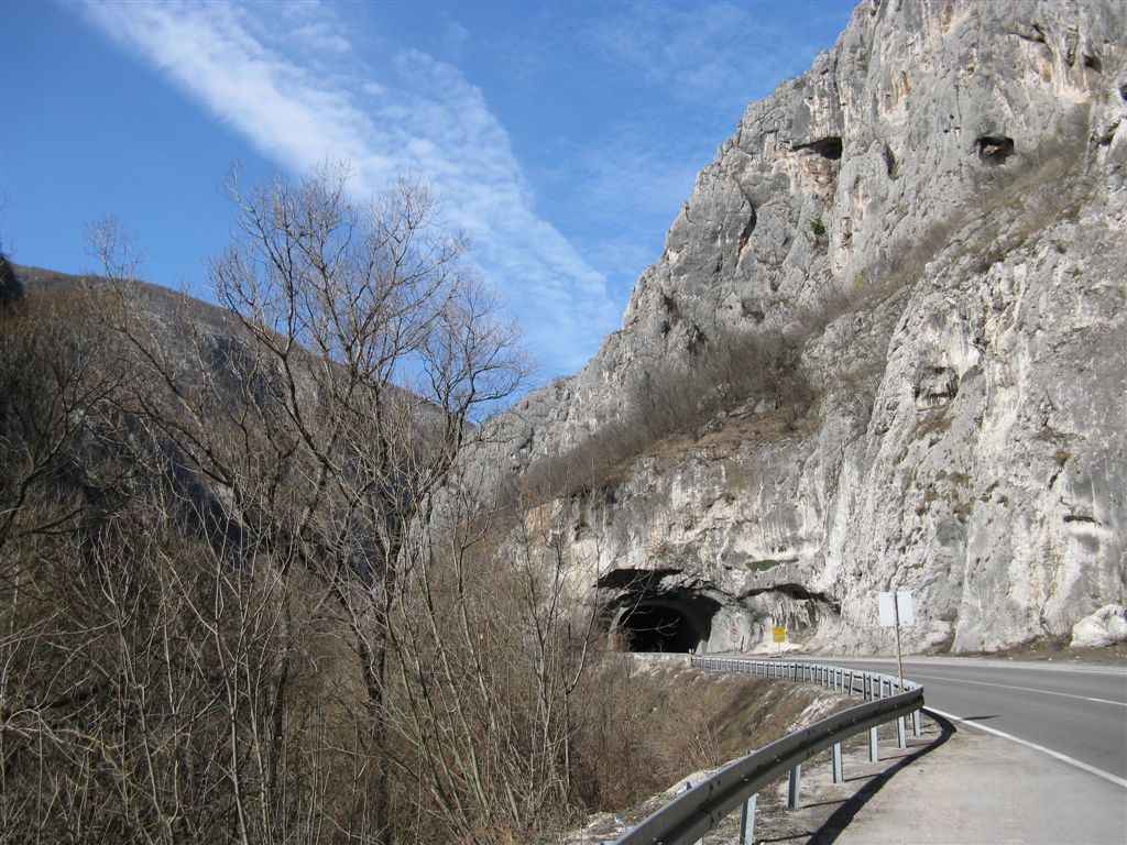 Cette grande route est un axe de transit pour tous les poids lourds allant vers la turquie. Heureusement nous partons un dimanche. Les long tunnels nous causerons quelques frayeurs et nous mettront au point une technique pour traverser les tunnels non eclairés. Nous stopperons une voiture, en essayant de lui demander de nous suivre…