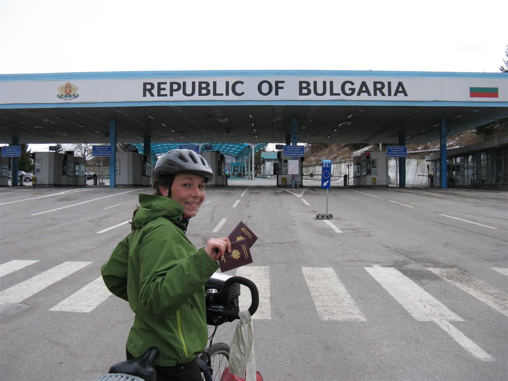 Le lendemain, triste spectacle, la pluie qui est tombée à transformé notre pré en bouillasse. Mais un genre de boue bien collante (Kamelia nous apprendra plus tard que la terre ici est bien spécifique). Il faut s’arrêter à plusieurs reprises pour décrotter nos roues qui se coincent. La route est tantot assimilable a une piscine, tantot à un marais. Nous demanderons finalement à la police si l’on peut prendre l’autoroute en vélo, on n’arrive pas à se parler, mais ils comprennent qu’on veut aller à Sofia. Ils nous conduisent alors… à l’autoroute !!! Les bretelles d’entrée sont parsemées de nid de poule… difficile de prendre de la vitesse, tout comme il doit etre difficile de ralentir pour prendre les sorties : il faut parfois faire demi tour pour prendre la sortie… quand celle ci n’est pas à gauche. En fait pour les bulgares, il est probable que le terme autoroute soit un synonyme de “route goudronnée”. En effet il y a même des passages piétons !