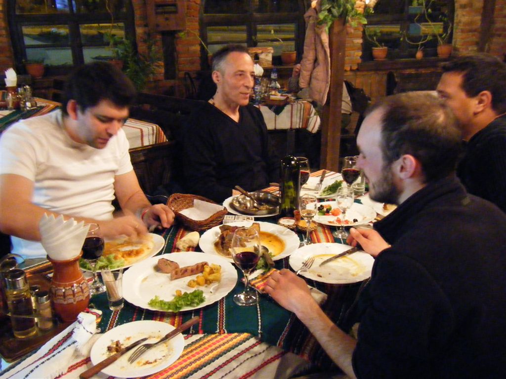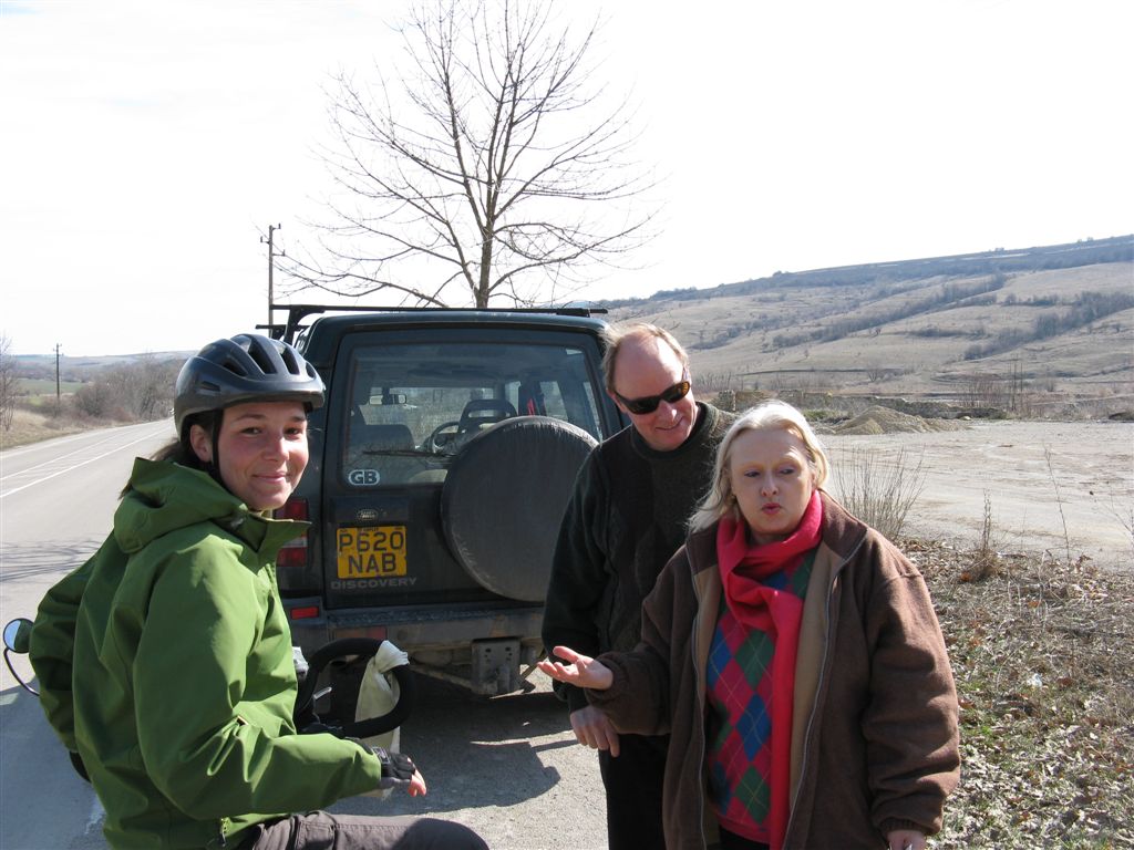 Je ne sais pas quel saint on fete le 9 mars, mais pour nous ca a ete la journee des rencontres francophones… Totu d’abord un 4×4 immatricule en grande bretagne s’arrete et nous fait signe de nous arreter. C’est Anna et Rob, un couple anglais (elle, a vecu en France) venu s’installer en Bulgarie pour au moins 4 saisons avec qui nous passerons 1/2h a discuter de nos ressentis et decouvertes respectifs sur ce nouveau pays. On repart avec leur soutien et leurs sourires (enfin on leur a quand meme laisses, rassurez-vous). Dans l’apres midi, une voiture immatriculee BG s’arrete. Le conducteur descend : “Bonjour, vous etes francais ? je suis bulgare mais j’habite en France, a Nantes.” C’est fou !! Mais tout ca, c’etait juste pour nous preparer a la rencontre de Plamen, Eric et Jonny… Pour cette fois, c’est une camionette bulgare qui ralentit. Le passager nous demande (en francais toujours, c’est la journee !) ou on va. “Varna, puis Mongolie”. Eux aussi et en plus Eric est fan de Mongolie. On charge les velos, on monte dans le camion, c’est surrealiste ! Ils viennent de Boulogne Biliancourt et sont partis il y a 36h en passant par la Roumanie. Ils sont d’ailleurs toujours sous le choc de la decouverte de ce pays… un pays vague selon Eric (de l’expression terrain vague, mais ca ne suffisait pas).