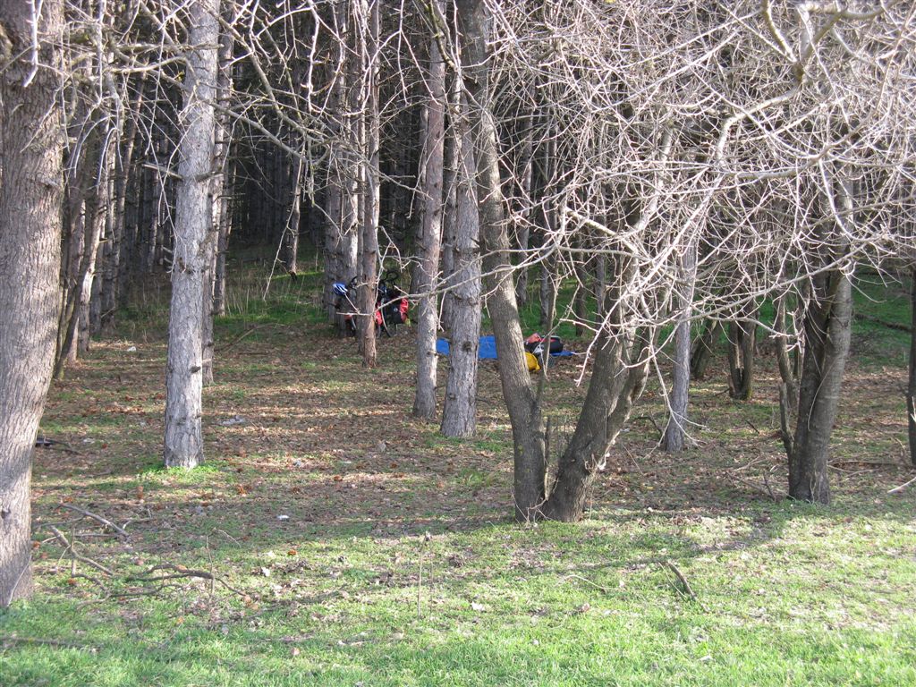 Le 8 mars sera pour nous une belle et grande journee : 117 km, 6h12 de selle, 62.25 km/h en pointe. Soleil et vent dans le dos avec a la cle un super terrain de camping sauvage a l’oree d’un bois. Tout au long de la route, de supers couleurs dans les champs cultives, des verts et des marrons tres intenses…