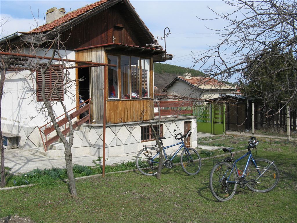 Nous prenons donc le train, et c’est toute une aventure. Les velos passent a peine dans le couloir a cote des compartiments et ils morflent un peu… Nous devons les mettre au fond de la derniere voiture. Nous nous installons dans le dernier compartiement, et le train demarre. Mais les portes ne se ferment pas ! il faut aller les verrouiller manuellement. Ca serait trop bete que nos velos se faissent la malle… A un moment, on gros bruit de porte en plein trajet, notre voisin tout calme “velo, boum !”. Une porte s’est ouverte, mais ouf, rien n’est encore tombe… C’est la folie ! 3h apres, nous descendons (depuis 1/2h, on est stresse a chaque gare pour savoir si les hieroglyphes sur la maison ressemblent a la suite de sons qui constituent Pleven). Le train repart, mais c’est sans faire attention qu’un homme est encore en train de monter… Il tombe sur le quai. Police, medecin… (si seulement ils fermaient leurs portes…). Vite, quittons la gare, ca fait deja beaucoup pour aujourd’hui ! Mais ce n’est pas fini… nous goutons la 1ere grosse giboulee de la saison, les rues sont des piscines et nous des plongeurs avec nos k-ways, pantalon de k-ways, sacs a pieds…