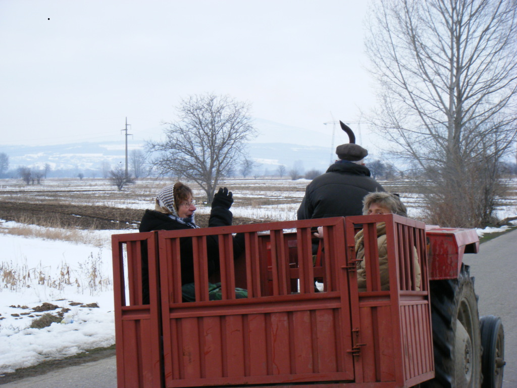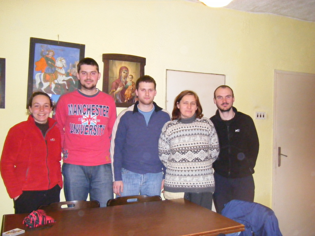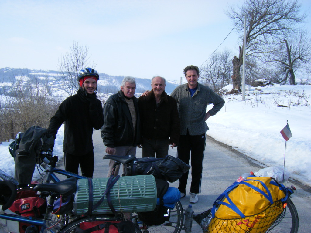 Nous sommes requinqués et partons pour une nouvelle journée de vélo. Pierre essaye des nouvelles techniques d’empilage de couches pour lutter contre le froid : pyjama au dessus du cycliste, double chaussettes, etc. (D’ailleurs, d’un point de vue ‘image de soi’, le pyjama au dessus du cycliste va être adopté par l’autre moitie de la troupe). Nous envisageons de reprendre le rythme de dormir sous la tente. On demande a un mec dans sa cour si on peut camper chez lui. Il nous dit qu’il préférerait qu’on dorme chez lui parce son chien, qu’il détache la nuit, est tellement méchant qu’il pourrait nous croquer (d’ailleurs, on devra même mettre nos vélos a l’abri…). Nous passons donc la soirée chez les Milojevič. Dragan, le fils ainé, notre premier interlocuteur, parle anglais. Cette famille est assez pauvre mais hallucinament accueillante !!! On nous prête des chaussons dès l’entrée, chacun dort sur un canapé, la maman dans le salon et les deux garcons (21 et 23 ans) dans une même pièce. Pour cette fois, ils dormiront tous les 3 dans le salon… c’est presque gênant. Notons d’ailleurs que les serbes font les lits d’une drole de manière : ils posent un drap sur le matelas, juste de la taille du matelas, puis un autre (nous verrons par le suite que celui là est en option) et empilent par dessus 2 ou 3 couvertures. Rien n’est bordé… Nous passons la soirée à jouer, nous apprenons à jouer au Sept, avec des cartes hongroises et nous faisons quelques parties de Jungle Speed. Le matin, petit dejeuner copieux accompagné de l’alcool local, le rakija (prononcer rakya) une eau-de-vie à la prune. Dragan nous a explique beaucoup de choses sur son pays, sur la Yougoslavie, sur sa culture (ils sont serbes), sur les habitudes orthodoxes… Nous partageons vraiment un bout de leur vie (11 degrés dans le chambre… et oui il y a un poele dans la cuisine et un petit dans l’entrée…). Le départ est émouvant, mais la suite nous attend ! Nous repartirons avec les repas des deux jours à venir !