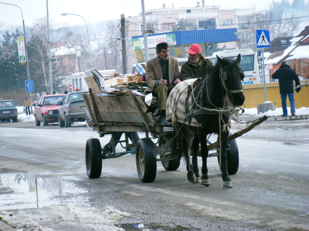 Il ne reste que 35 km pour rejoindre Niš, une grosse ville ou nous pouvons trouver internet, nous les faisons dans la matinée. Nous entrons dans la ville par un drôle de quartier… On croit visiter le Caire puis Calcutta. Tout le quartier sert au traitement des déchets à ciel ouvert, un peu sur la route… des charrettes transportent toute sorte de choses, des tractopelles empilent, écrasent, mais tout reste sale. On continue, et en plein centre ville, on voit beaucoup de Roms qui se déplacent sur une remorque tirée par un cheval avec plein de detritus qu’ils ont recupérés ça et là. Heureusement nous trouvons un havre de calme au milieu de cette agitation dans une auberge de jeunesse et pouvons nous reposer. Ca fait quand meme bizarre d’entendre des sabots de cheval toutes les 1/2 heures environ qui passent sous la fenêtre du dortoir… aller, je vous partage une petite photo !