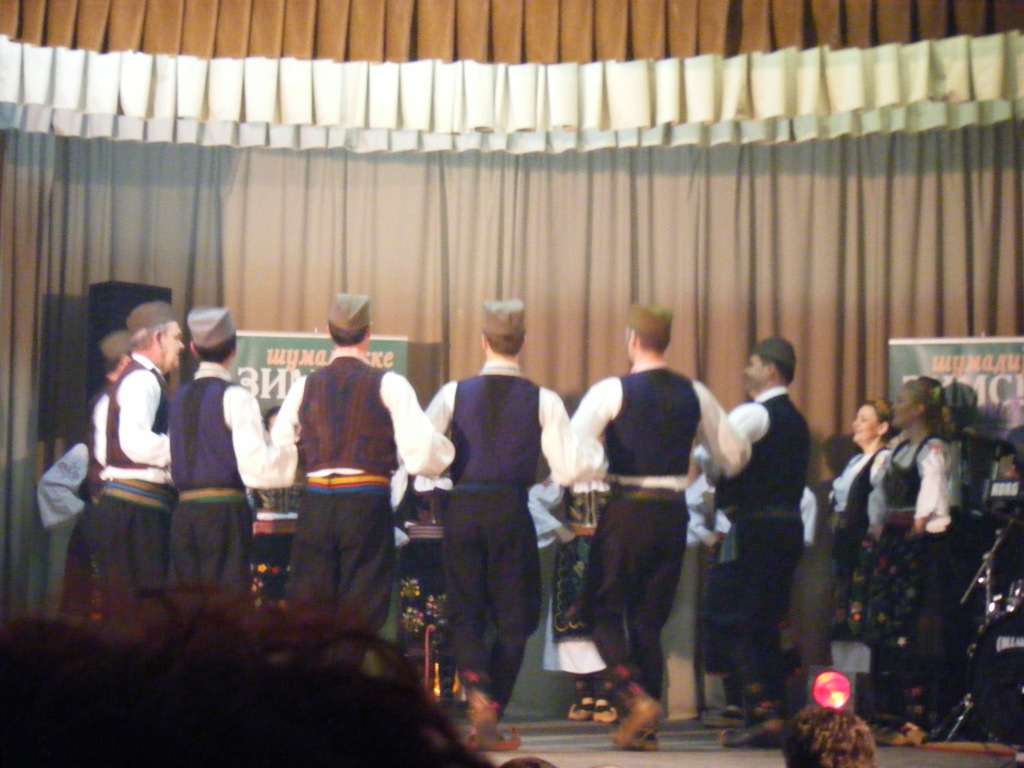 Apres avoir passé Kragujevac et l’oppression que nous ressentons en velo dans toutes les grosses villes, nous reprenons la montagne, mais pas par la route que nous avions prévu, nous nous en rendons compte plus tard… c’est pas grave de toute facon, au final, on rejoindra la route prévue. On commence à chercher où dormir et la magie serbe reprend… Un homme, on l’apellera M. Schleker, nous demande de le suivre. Il ne peut pas nous loger mais est sûr, comme nous sommes francais, qu’il trouvera quelqu’un qui pourra. Pendant qu’il cherche, il nous dit de l’attendre au bistro et nous colle 2 coca. Nous sommes arrivés dans un village et pourtant des cars affluent de toutes parts, c’est l’effervescence, je sens que quelque chose nous échappe. Nous discutons avec notre voisin de table et il nous explique qu’il y a un concours de chants et de danses serbes retransmi sur radio et télé locale, c’est la folie ! Nous le suivons dans la salle des fêtes et goutons avec bonheur à la fête traditionelle. C’est d’ailleurs tellement la fête que le Rakija coule à flot et un chanteur n’arrivera pas à monter la 2e marche de l’escalier pour finir par terre, discalifié… A la fin du coucours, tout le monde se met à danser dans la salle, mais, la loi Evin ne faisant pas effet en Serbie, nous avons besoin de prendre l’air. Dehors, il fait nuit mais les vélos attirent quand même les gens, nous discutons, retrouvons schleker qui nous indique un homme, le fils de celui ci peut nous loger. Nous suivons le papi. Il ne parle pas anglais et a seulement quelques mots d’allemand, mais ca lui fait tellement plaisir de nous aider qu’il essaye de se faire comprendre par tous les moyens. Finalement on se rend compte que la langue n’est pas toujours indispensable quand l’envie de communiquer est là.