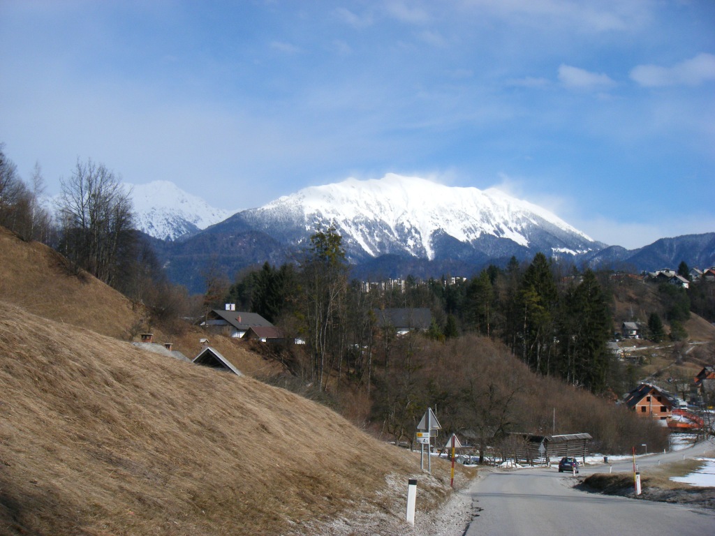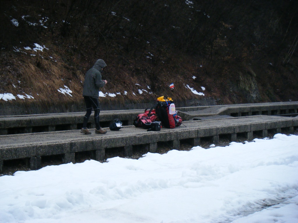 Sur les conseils de ce dernier, nous passons la frontiere pour prendre le train (sous une pluie de ouf) direction le nord de la Slovenie. En 1h, nous passerons par 3 stades : au debut, on aurait voulu etre en velo tellement le paysage est beau, on est decu d’y passer si vite. Apres quelques tunnels, on se dit au’on est bien dans le train vu la neige qu’il y a dehors. Le dernier quart d’heure, on regrette d’avoir pris le train pour si haut, le paysage est apocalyptique, Emilio y etait venu en ete… A la descente du train, c’est magnifique, tout est blanc, mais il pleut et la temperature avoisine 0°C… Je fais un peu de resistance a une mission de survie dans la neige, et nous louons une chambre pour quelques piecettes (a laisser sur la table en partant).