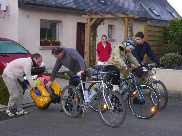 Les 5 roues arrivent tant bien que mal entre nos mains, par la poste, et nous voilà partis pour notre première sortie roulée, ensemble. Nous passerons la première journée avec Pierre-François, mon frère puis poursuivrons notre petit périple à deux. Première sortie pour les vélos, et encore l’un d’eux restera au garage pour cette fois…Nous començons donc par 5 jours en Bretagne à silloner côtes, canaux et massif armoricain. L’occasion aussi de passer voir des amis et de la famille (PM, Cécile, Pierre-Antoine, mes parents).